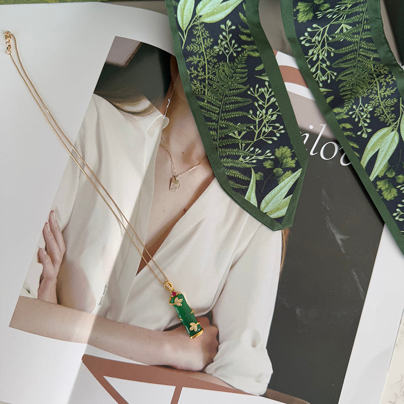 Explore the tranquil beauty brought by this unique bamboo - inspired crystal pendant. The exquisite pendant symbolizes health, safety, and continuous improvement, adding positive energy to your daily life. The natural green of the bamboo crystal brings sense of peace and balance.