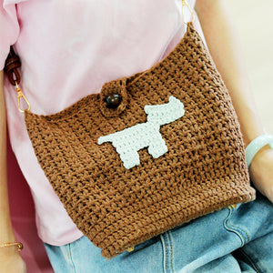 Lightweight, durable handmade crochet shoulder bag with playful puppy pattern. Hand-crocheted, spacious interior and adjustable strap keep essentials organized. Stylish cross-body bag perfect for everyday use, casual outings, travel, or gifting.
