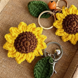 Handmade crochet sunflower keychain made of soft milk cotton, can be used as bag charm, keychain or car hanging ornament.