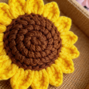 Craftsmanship: Entirely hand-crocheted, with distinct textures on the petals and flower disk, complemented by a matching green leaf for a lifelike, full-bodied appearance.